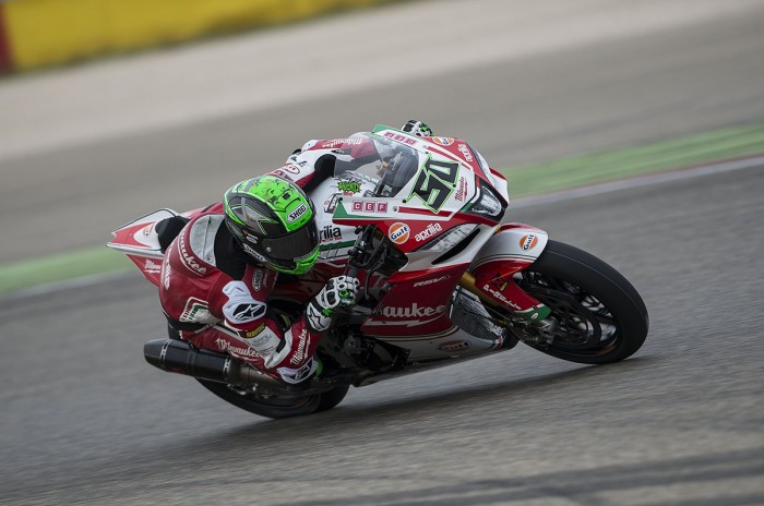 Laverty made some big progress with the RSV4 during a test at Aragon, and both he and Lorenzo Savadori were well inside the top ten after two free practice sessions at the Circuit Van Drenthe.