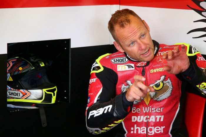 Be Wiser Ducati’s Shane Byrne had phenomenal pace during the second MCE British Superbike free practice session at his home track of Brands Hatch.