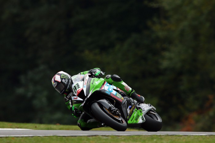 The ZX-10R racer went one tenth under lap record pace at the GP circuit in Kent and appeared unfazed by the cold circuit conditions this morning. His title rival, Be Wiser Ducati's Shane Byrne left it very late to make it out on the tarmac onboard the Panigale, and used the final timed session to test the harder rear Pirelli tyre.
