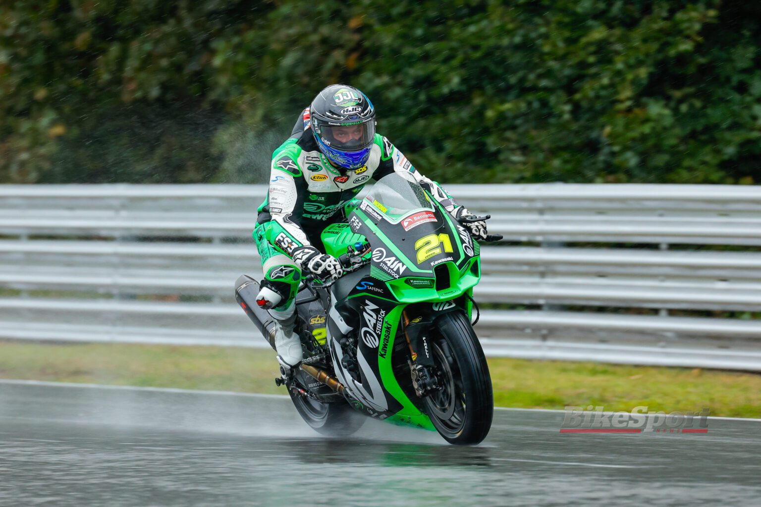 The AJN Steelstock Kawasaki riders' weekend had been going well in the wet conditions as he was at the sharp end in Practice, and went on to qualify in sixth place for the opening race of the weekend.