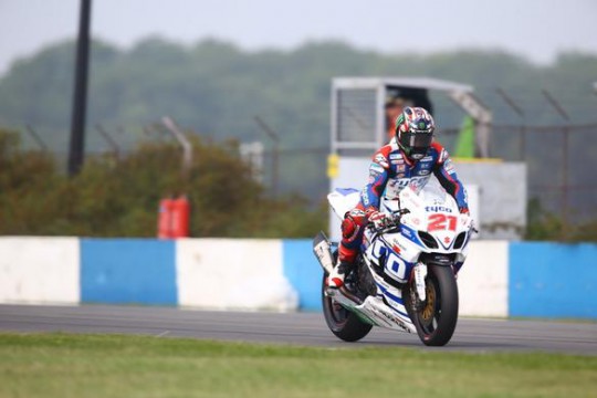 Tyco Suzuki John Hopkins will start from pole for the first time this year, after a 1’29.555 was good enough to place his bike on the number one spot of the MCE British Superbike grid, for race one tomorrow at Donington Park.