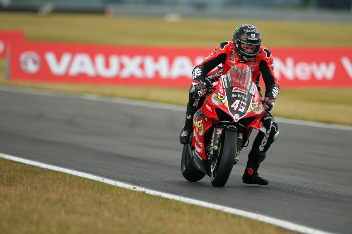 Meanwhile, the fractured-leg-stricken Tyco BMW man Christian Iddon made his way well up into the points as he encroached the top five after levering Smith’s Racing’s Peter Hickman aside for sixth and settling into pursuit of Honda Racing’s Andrew Irwin.