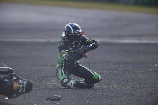 Anvil TAG Kawasaki’s Richard Cooper was taken to hospital after crash in today’s MCE British Superbike qualifying session at Thruxton and has been diagnosed with a broken right humerus.