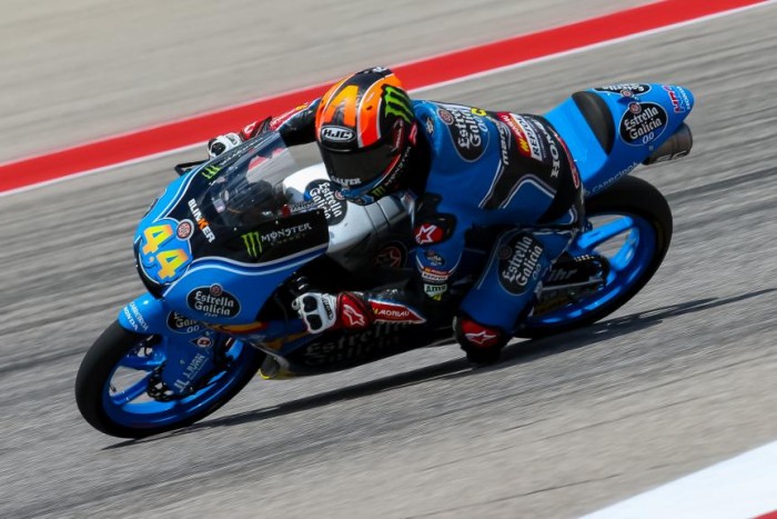 Aron Canet set a serious marker in Moto3 free practice one at the Austin MotoGP round and the Spanish Estrella Galicia rider bettered it further in the afternoon as a 2’16.750 saw him seven tenths clear of championship leader Joan Mir to easily end the day fastest.