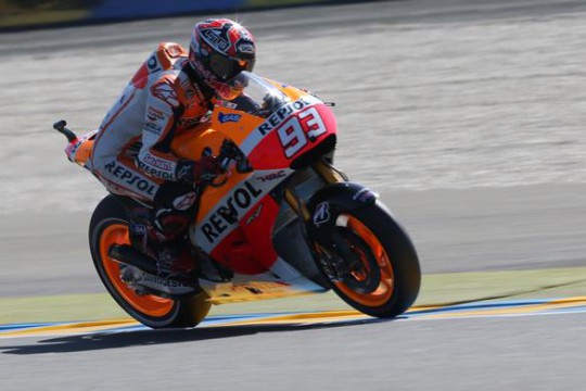 Repsol Honda’s Marc Marquez has taken his fifth MotoGP pole position in a row at Le Mans this afternoon by another massive margin, heading Pol Espargaro by just under seven-tenths of a second while Valentino Rossi and Jorge Lorenzo ended on the second row.