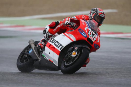 Ducati’s Andrea Dovizioso topped the second wet MotoGP free practice session at Misano this afternoon by almost 1.2s despite late charges by the Repsol Hondas of Dani Pedrosa and Marc Marquez in a session that saw another batch of crashes.