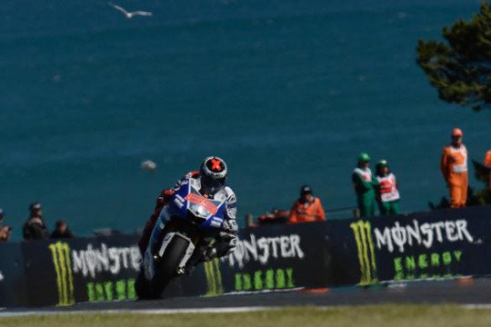 After getting away in his inital lightning start, Lorenzo, Marquez and Dani Pedrosa made a break and tangling at Honda corner while Marquez had a huge moment on his way up Lukey Heights to almost match his free practice crash