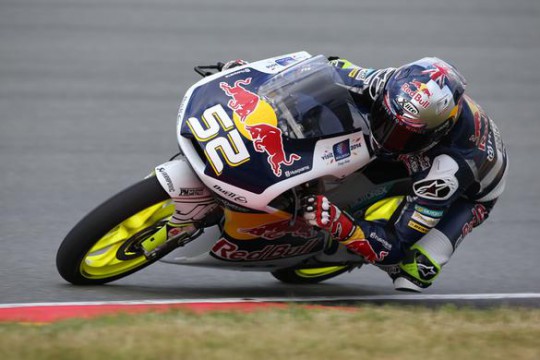 An early banker lap by Britain’s Danny Kent ensured he bagged a second-row qualifying spot for tomorrow’s Moto3 race at the Sachsenring MotoGP round as brief shower called a halt to proceedings with ten minutes left to run.