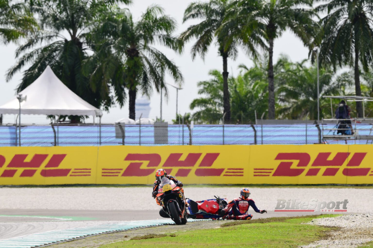 During the MotoGP Sprint Race at the Malaysian Grand Prix, Luca Marini suffered his first crash on a MotoGP race weekend of the 2025 season after he collided with Pol Espargaro.