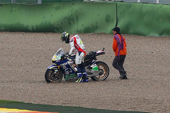 Britain’s Cal Crutchlow says he learned a lesson at the Valencia MotoGP test yesterday after crashing four corners into his first out lap on a wet track.