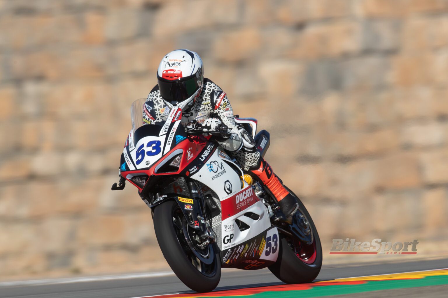 Ducati riders Xavi Cardelus and Philipp Oettl were in third and fourth places for Orelac Racing Verdnatura and the Feel Racing WorldSSP Team.
